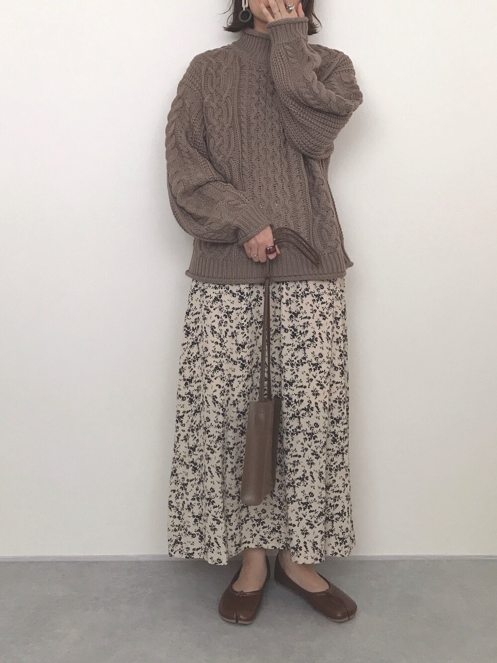 rumiのニット/セーター「モックネックケーブルニット」を使ったコーディネート