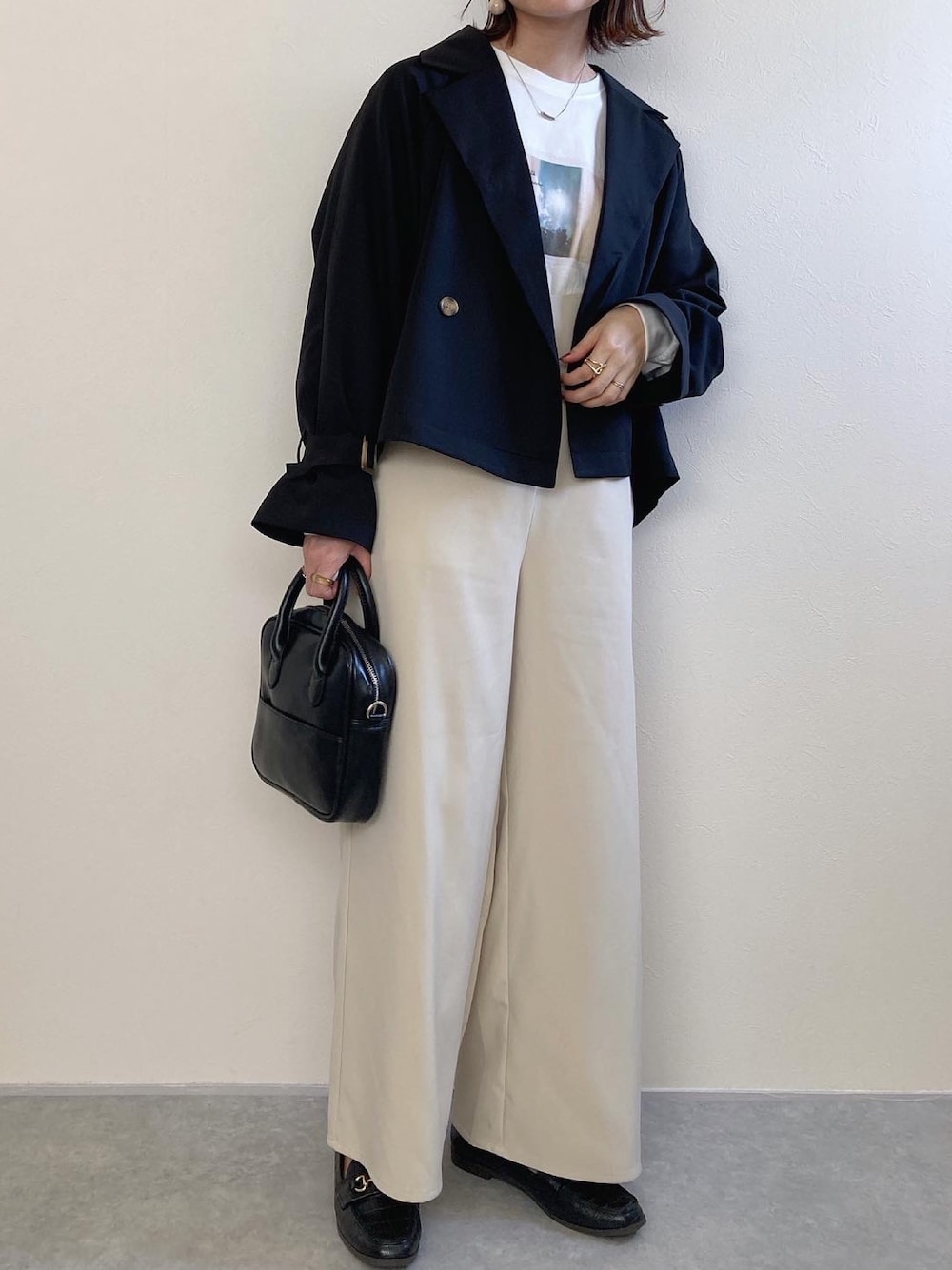 rumiのトレンチコート「【累計販売枚数1万枚突破!】コットンライクツイルキャンディスリーブショートトレンチ」を使ったコーディネート