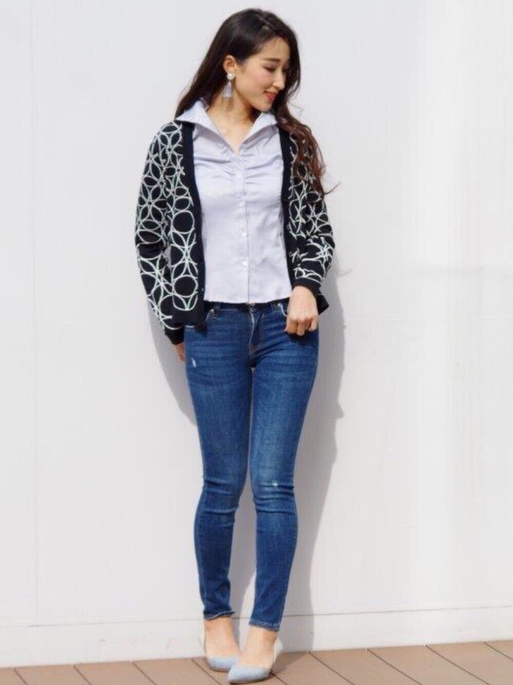 Vivianaのカーディガン/ボレロ「サークルキカ柄ジャカードVカーディガン」を使ったコーディネート