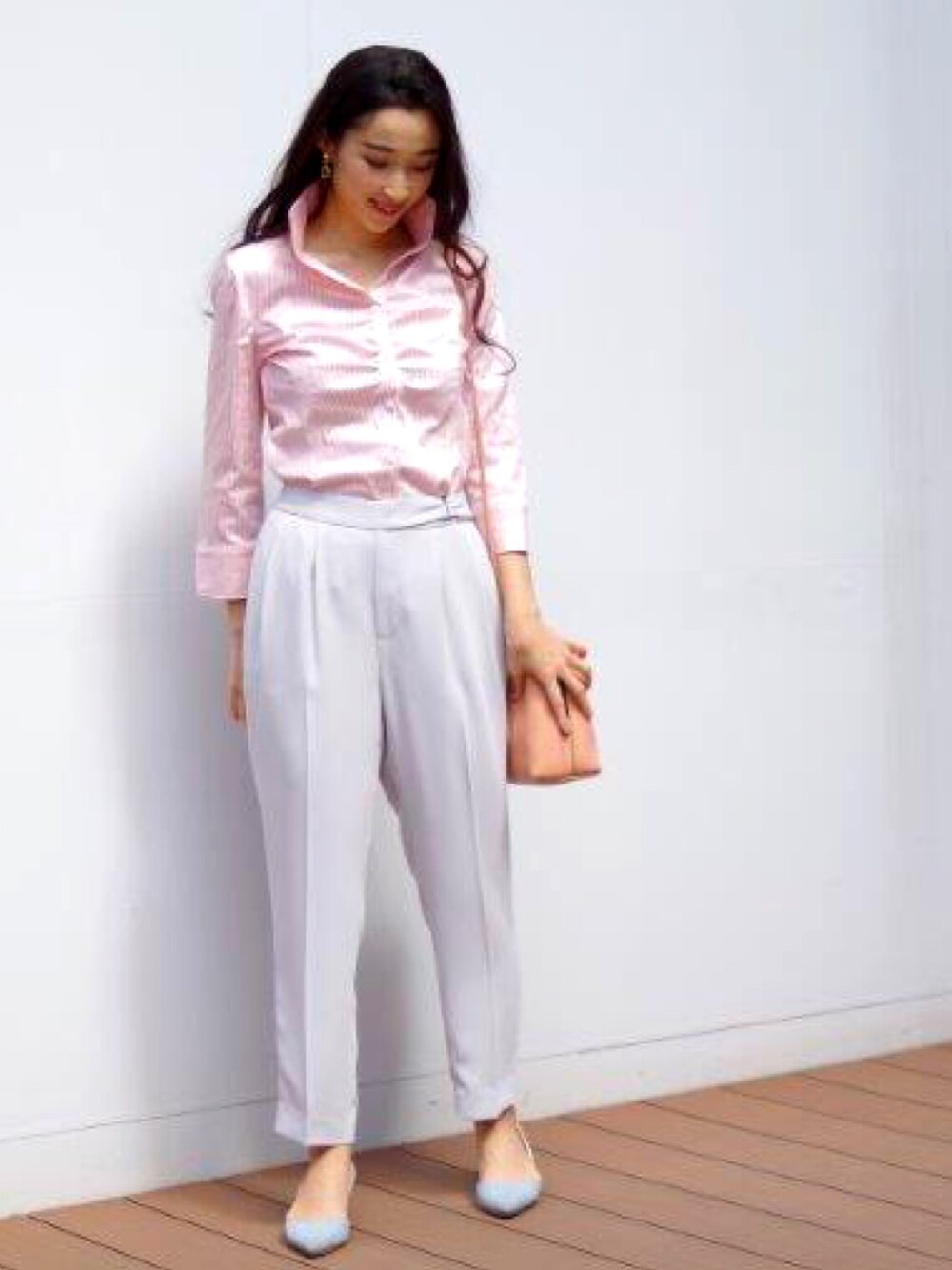 淡色同士の春通勤コーディネート