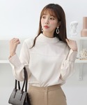 maiK☺︎のシャツ/ブラウス「バンドカラー パフ袖 サテンブラウス」を使ったコーディネート