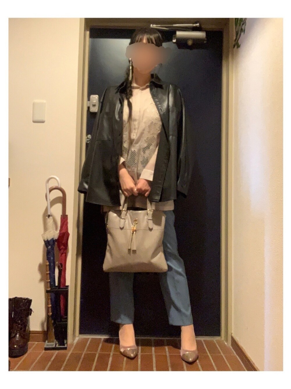 maiK☺︎のトップス「フェイクレザーオーバーサイズシャツ」を使ったコーディネート