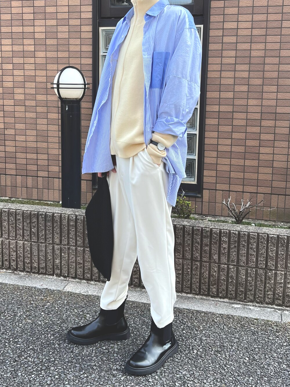 お久しぶりです 明るめ秋コーデです UNIQLOのインナーめちゃくちゃ使い勝手いいです 色違いも買っちゃいました!! インナー:UNIQLO ボトムス:Luis シューズ:gu×undercover バック:MM6 またこれからもチェック等お願いします!!🙇♂️