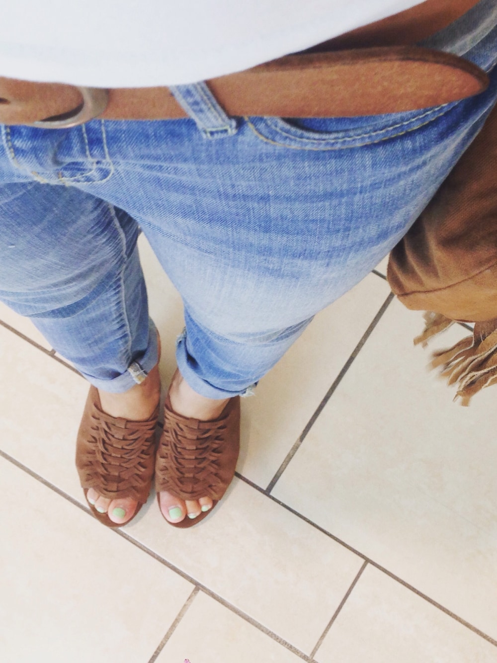 トップスまで上手く撮影できない。 ブラウンコーデ。 お気に入りのサンダル。 暑すぎるけど秋色コーデ♡