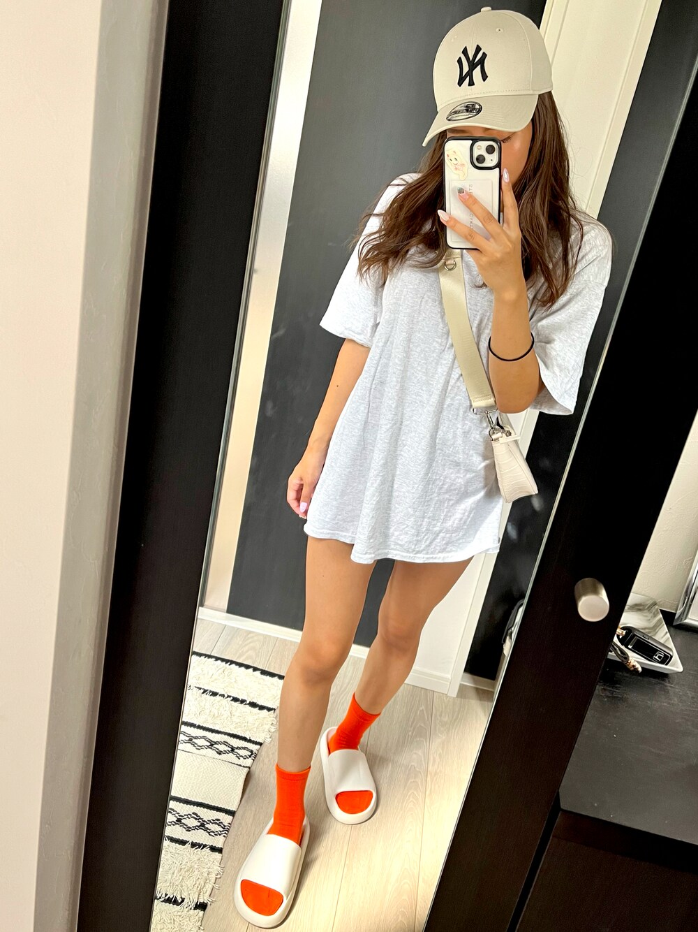 チャンピオンのシワシワTに ファミマの靴下🧡🧡🧡 可愛いオレンジ🍊