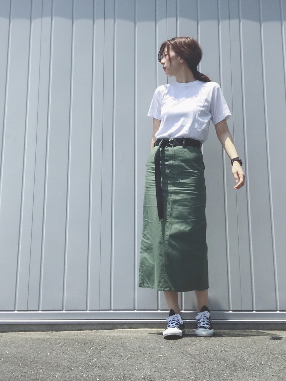 シンプル以外のなにものでもないが、、 このスカートめっちゃ好きです。 Tシャツをお洒落に着れるひとになりたいのです。 Instagram👉m_238182 WEARもフォローしてくれたら嬉しいです🌿