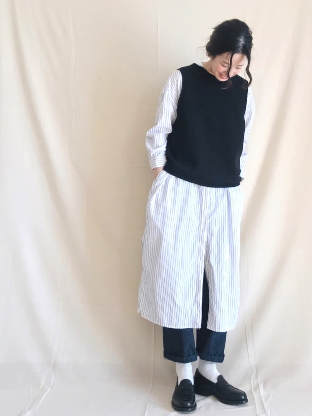 RIKAのワンピース「サイドスリット スタンドカラー ストライプワンピース#」を使ったコーディネート