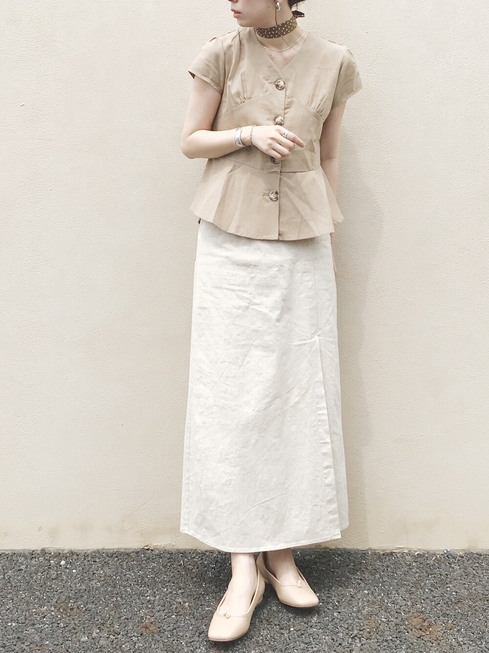 RIKAのスカート「ストレッチスリットマキシスカート」を使ったコーディネート