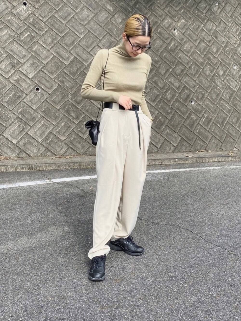 RIKAのスラックス「ハイウエストタックワイドテーパードパンツ」を使ったコーディネート