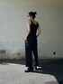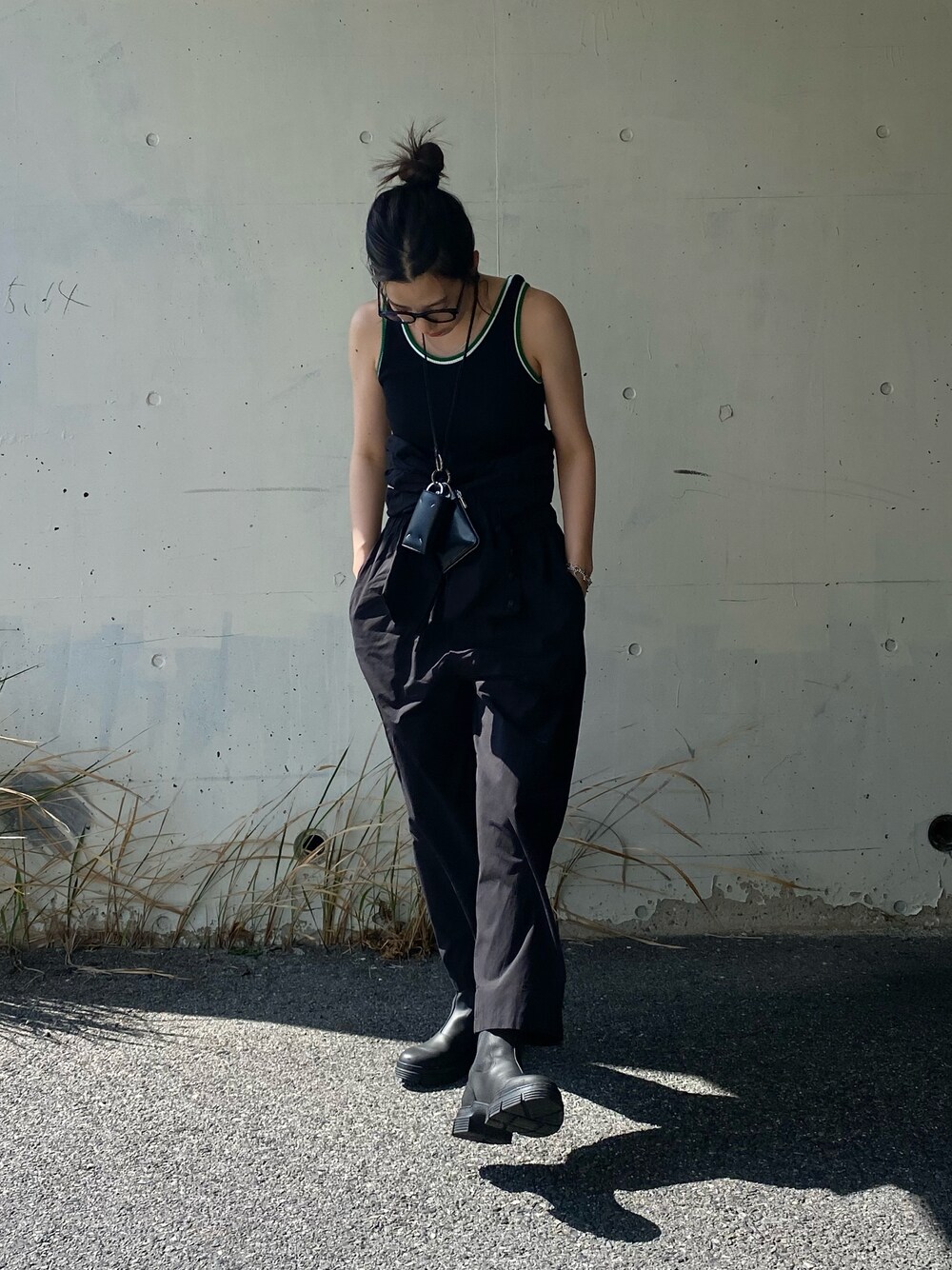 MOCAでall black✌️ ヘルシーなラインのタンクトップに、シャツコンビネゾンをウエストでぎゅっと結んでパンツとして。 もちろんタンク1枚はまだ寒くてすぐコンビネゾン 普通に着た(5月上旬)😇