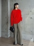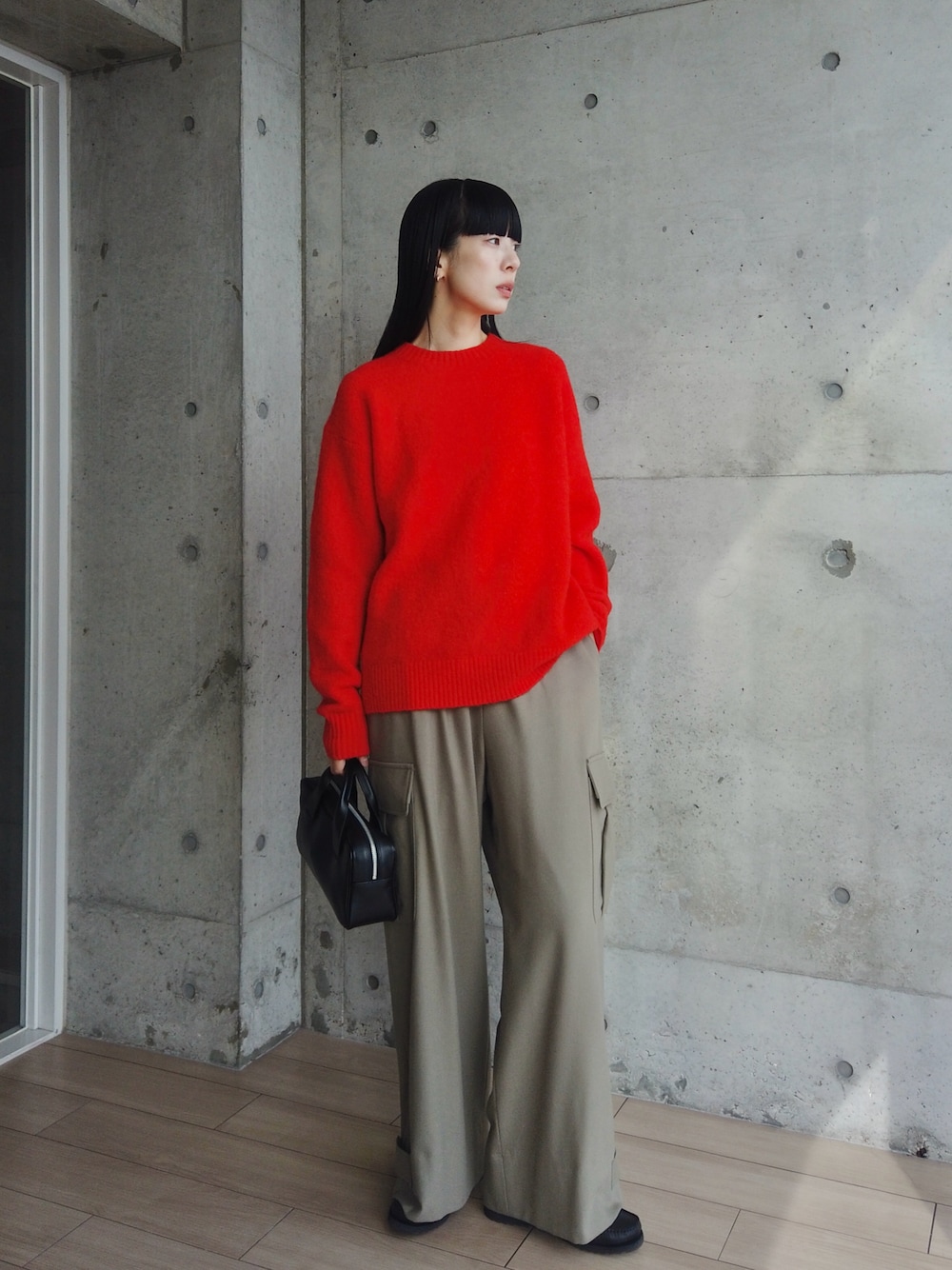なんとなくおめでたそうな朱色のニットが昨日のコーデでした🧶 カラーニットも優しく受け止めてくれるベージュ(グレージュ?)のミリタリーパンツ。 お気に入りの1本です☺️