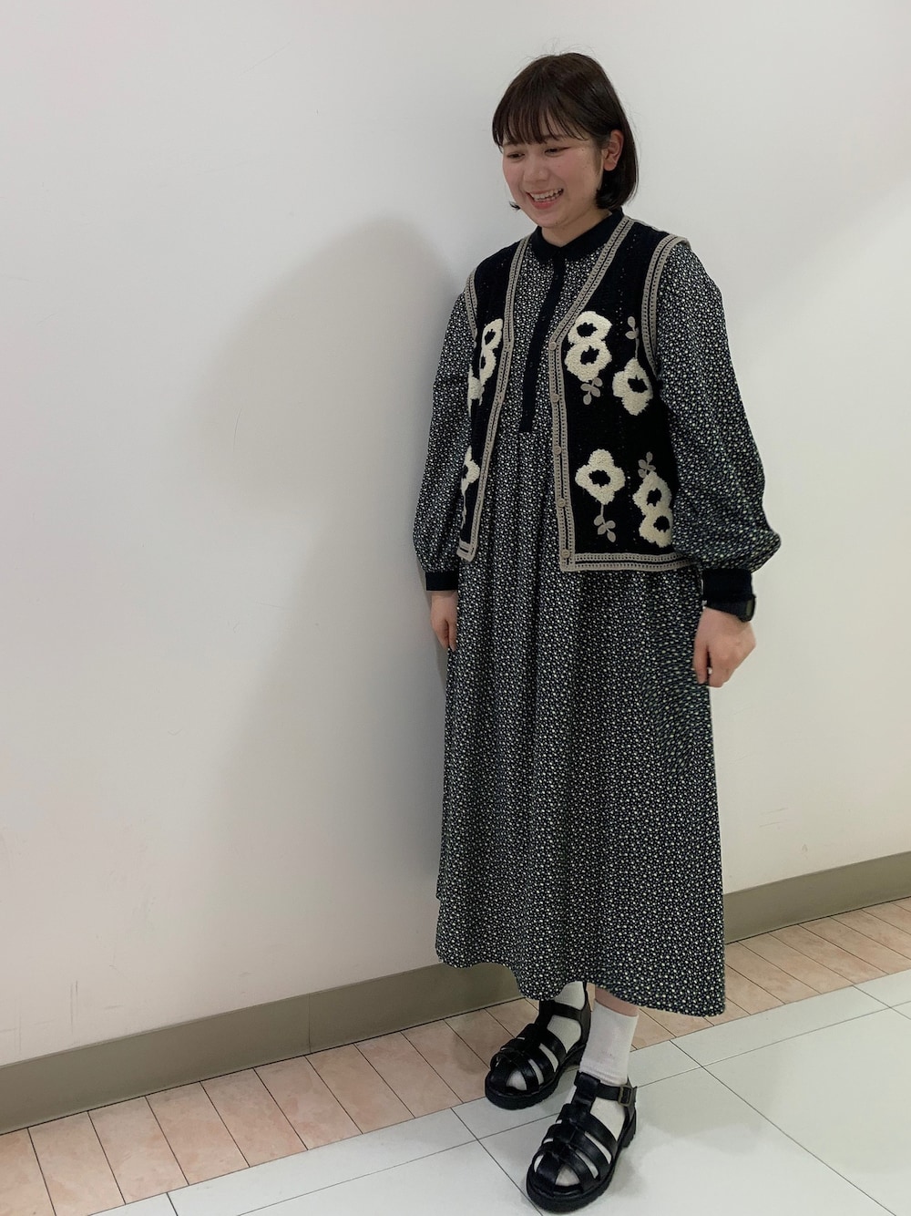 初めまして🐰 SM2 keittio 豊田T-FACE店スタッフのまほと申します! ドキドキの初投稿です🌟 今回は春らしい花柄コーデのご紹介です🌼 小花柄のワンピースに花柄刺繍のベストを合わせてみました! 黒色でまとめているので可愛くなりすぎず楽しむことができ、毎年人気のグルカサンダルも合わせて一気に春らしさを感じられます✨ 是非お花見やピクニックなど春のイベントに着て頂きたいコーデです◎