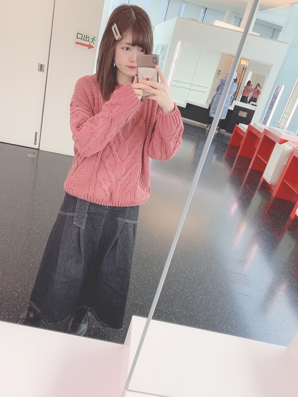 トイレで失礼します笑 この日は寒かったのでもこもこニットを着ました。オーバーサイズが大好きなのです。 スニーカーは買ってから履き心地よすぎて毎日履いてるくらいお気に入りです。