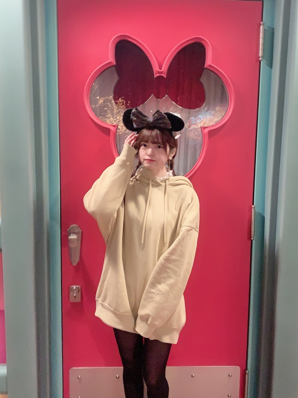 2日連続ディズニー。 オーバーサイズなのでゆるっとワンピース風に着たくてXLサイズです。 インナーもGUで揃えました✨