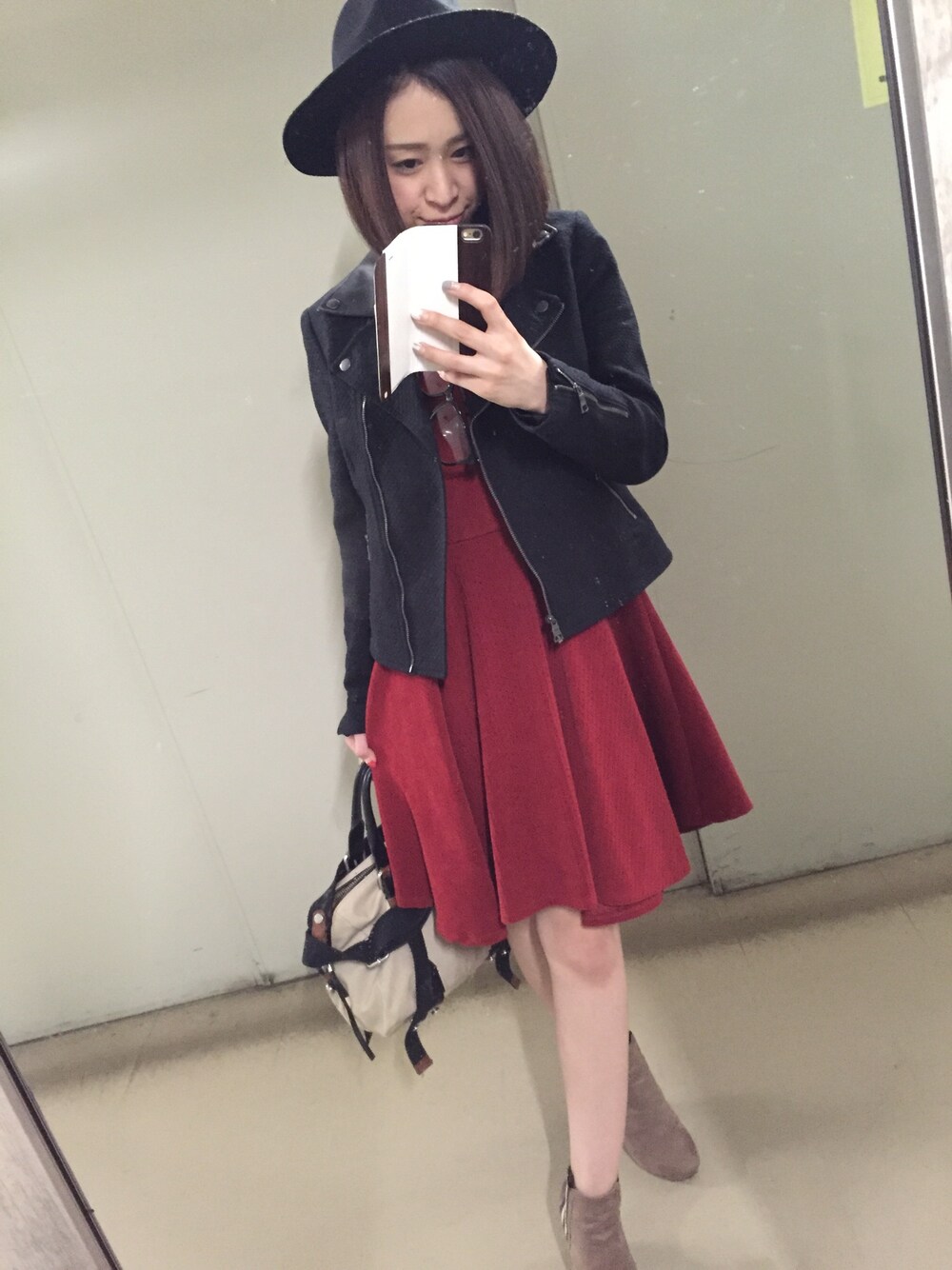 今日はこれからカフェ♡ ワンピだけど、私らしさを忘れない! ライダースを合わせてかっこよく(^ω^)