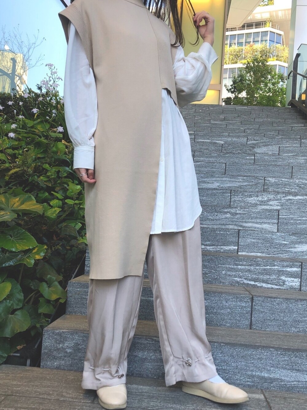 monomonoのニット/セーター「【UN3D.(アンスリード)】アシメロングニットベスト 522052600201」を使ったコーディネート