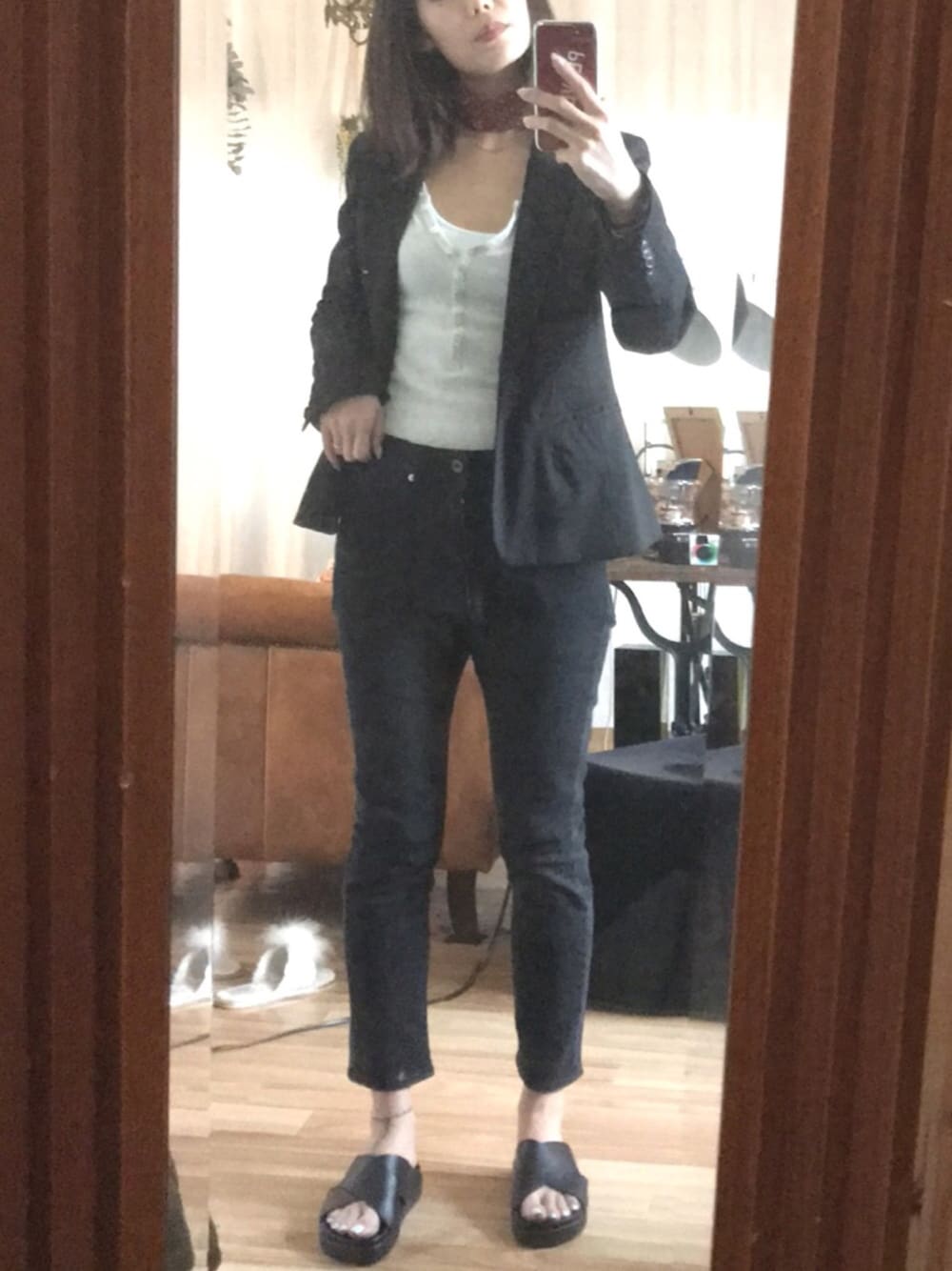 旦那のパンツが転がってて 履いてみたらぴったりだったから 組んだコーデ💁🏻♂️