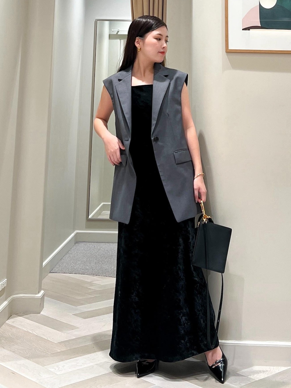 新作のクラッシュベロアキャミワンピースが 入荷しましたのでジレと合わせてみました!! 素材感がなんとも高級感あり着るだけで 気分が上がるアイテムです..♡♡