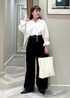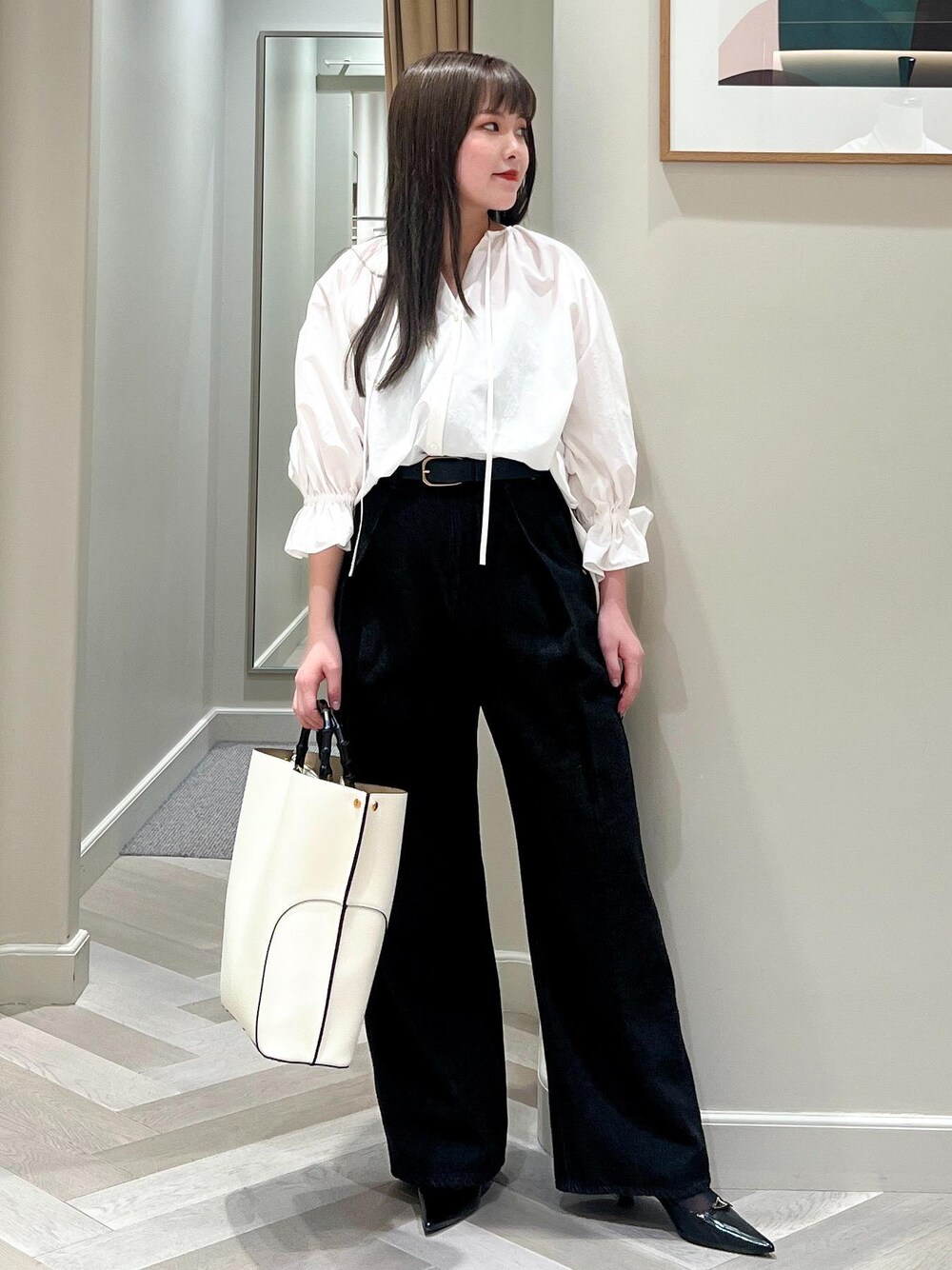 通勤を意識したスタイリングに。 バンブーの持ち手が新鮮で大人っぽく A4バッグの中でも比較的小さめで 普段でも持ちやすいデザインです★