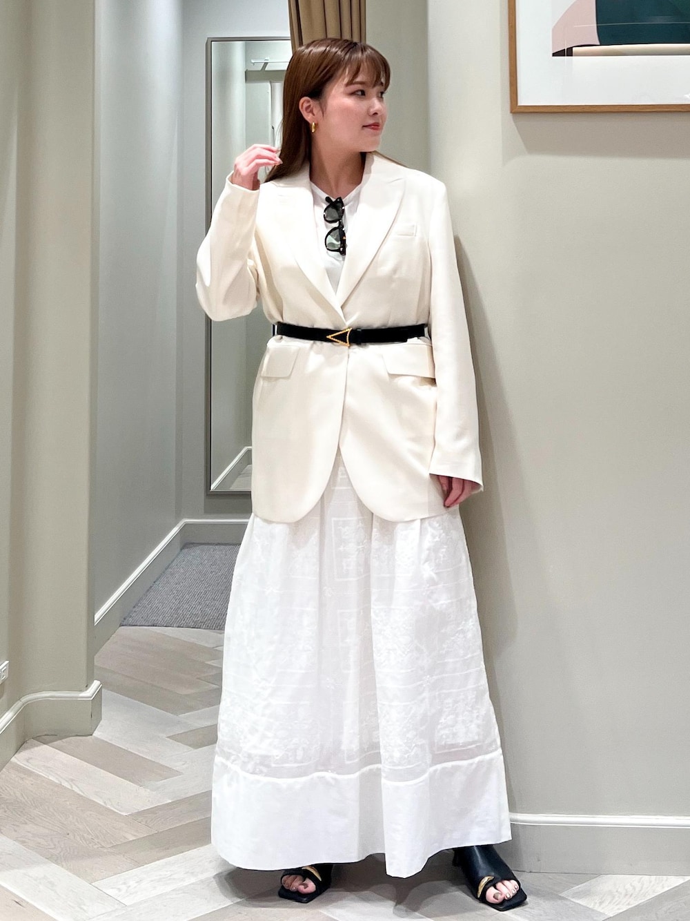 ブランドのシグネチャーアイテムとして 愛され続ける”ジャケット” ロペの新しいラインIMROPÉのシリーズを使って ホワイトでまとめたフェミニンスタイル。 きちんと感がありつつ何処か抜け感があり 自分らしく着てみたいとハレ服をイメージしました。