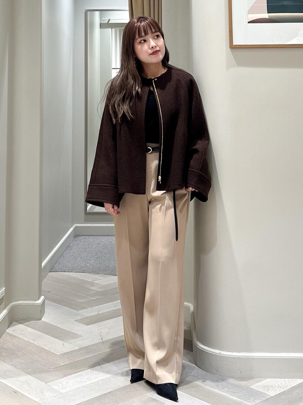 個人的に一押しのBellandi(ベランディ) ウールジャージジップブルゾンコート Aラインに広がるデザインが シンプルなのにオシャレ見えします⭐︎