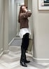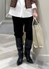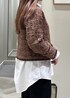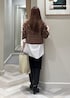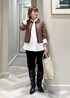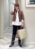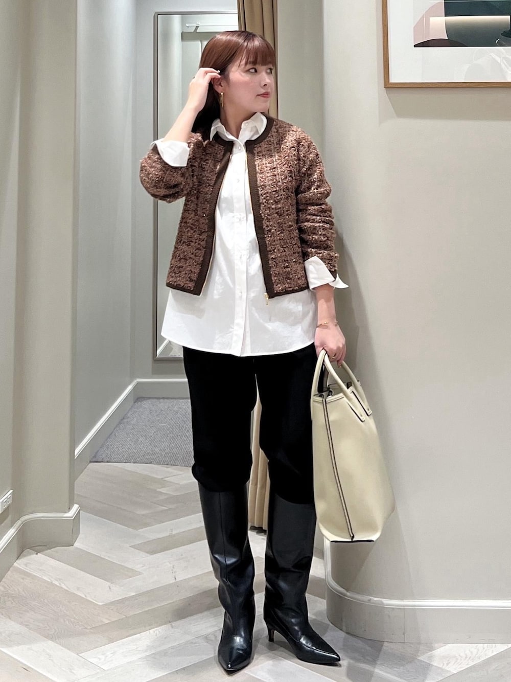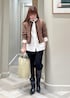 ブラウンのツィードブルゾンを羽織って パンツをブーツインで大人モードなstylingに。