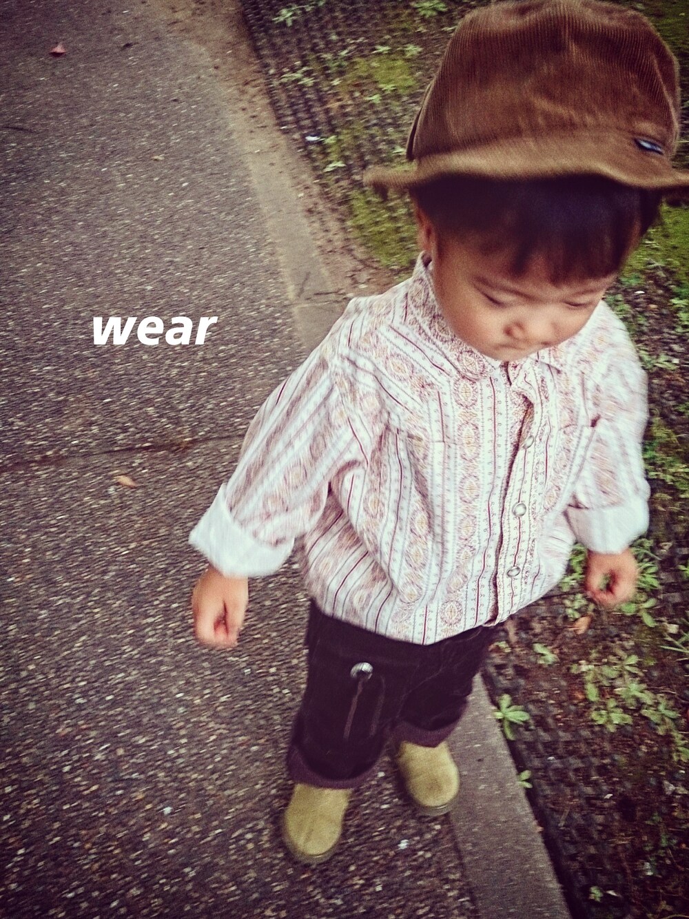 アメカジ秋コーデ🍂🍁 コーデュロイハット+ウエスタンシャツ+コーデュロイパンツ👖+サイドゴアブーツ👞 vintageシャツはまだサイズが大きいので袖少しまくって、コーデュロイパンツは両ポケットにコンチョがついていてお気に入り👖☺✨ 今日はいつもの公園で大きいグルグル滑り台を何十回も滑って大満足な彼でした🎶 ママもーママもー!と引っ張られて私も滑り台を後ろから追いかけて滑らないといけないから最後の方は足がクタクタ。。あやうく産まれたての小鹿になるところでした。 あと、また前髪のびてきたので昨日カットしました✂切るのは産まれてから三回目くらいかな🎵小窓にのせました(笑) コーデみていただきありがとうございました🎵