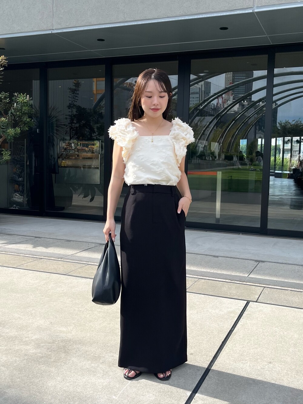 可愛すぎるパフトップス♡ モノトーンきれいめコーデ✨