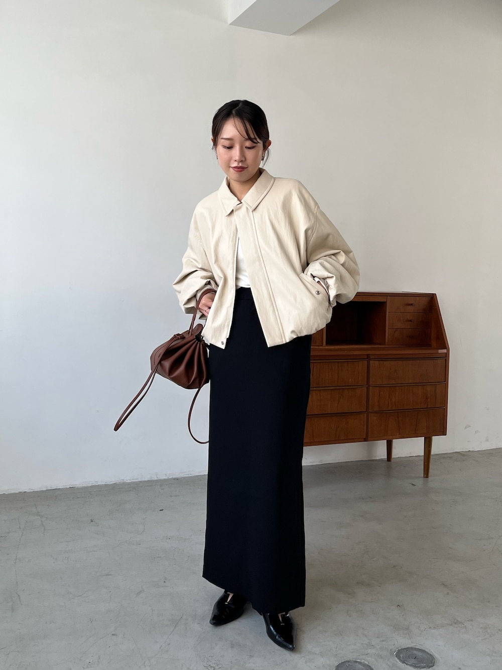 mami_lemage(CAPRICIEUX LE'MAGE)のブルゾン「【サイズ展開あり/軽量】バルーンレザージャケット」を使ったコーディネート