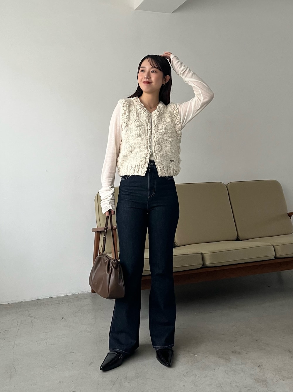 ハンドニットの素材感が可愛いニットでカジュアルデニムコーデ👖🤍