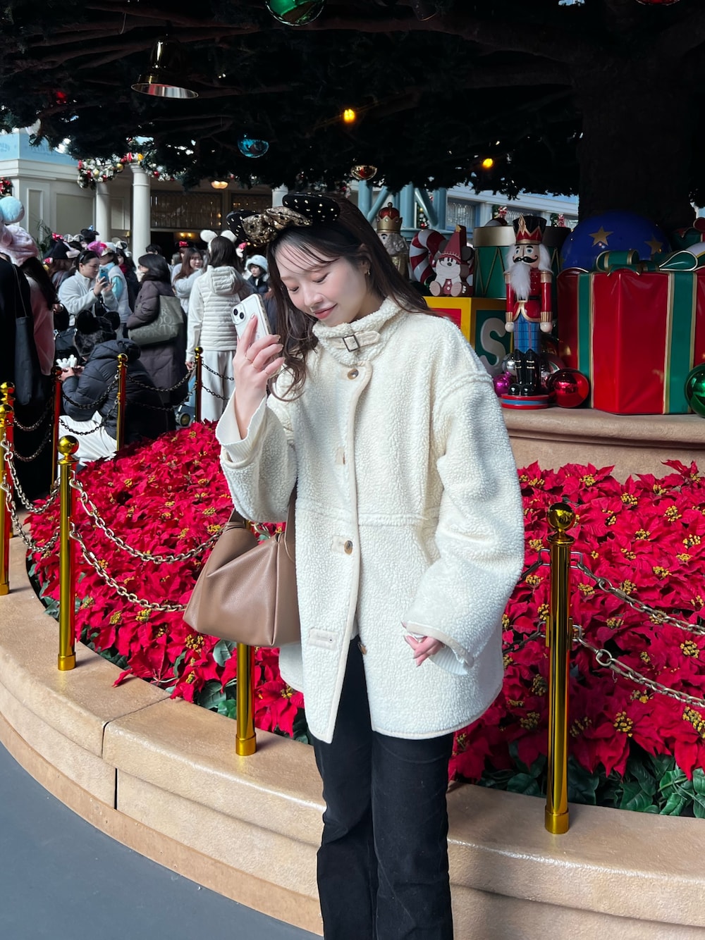 お気に入りのボアコート♡ クリスマスディズニーの雰囲気ともいい感じっ🎄