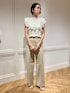 【STAFF'S Recommendation】 STAFF'S SPEC 36~38 Size 【スタイリングポイント】 フェミニンなフリルニットに、ツイルパンツを合わせて春の大人カジュアルスタイルに。 【サイズ感/素材感/着心地】 ・フリルプルオーバー コンパクトなサイズ感で、ワイドパンツやフレアスカートとの相性が◎。 さらっとした肌触りで、身頃いっぱいにフリルが施されたフェミニンな印象の華やかなプルオーバーです。 1枚で着映えするトップスは、この春夏活躍しそう。 また、袖のラッフルはしなやかなので上からジャケットを羽織ることも出来るのがうれしいポイントです。 ・ストレッチツイルパンツ イタリア、MANTECO(マンテコ)社のサスティナブル素材を使用したシリーズです。 ワイドシルエットのパンツは、すっきりとしたシルエットで様々なトップスと合わせやすく重宝します。