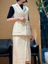 【MID SUMMER COLLECTION 2023】 ジレとラップスカートのセットアップで、シンプルだけどトレンド感のある着こなしに。 テーラードタイプのジレは後ろにタックが入っているので、メンズライクになり過ぎないのもANAYIらしいポイント。 ジャケットの代わりにジレスタイルで通勤の夏スタイルはいかがでしょうか。