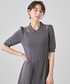ノーブルな印象の衿が印象的なニットドッキングワンピース。 ニュアンスグレーが少し大人なバランス。 肘上までの長めの袖丈なので一枚で着られる安心感もあります。 光沢のあるボトムのプリーツ部分とデコルテのシアー感が少しフォーマルなシーンにもマッチしてくれます。