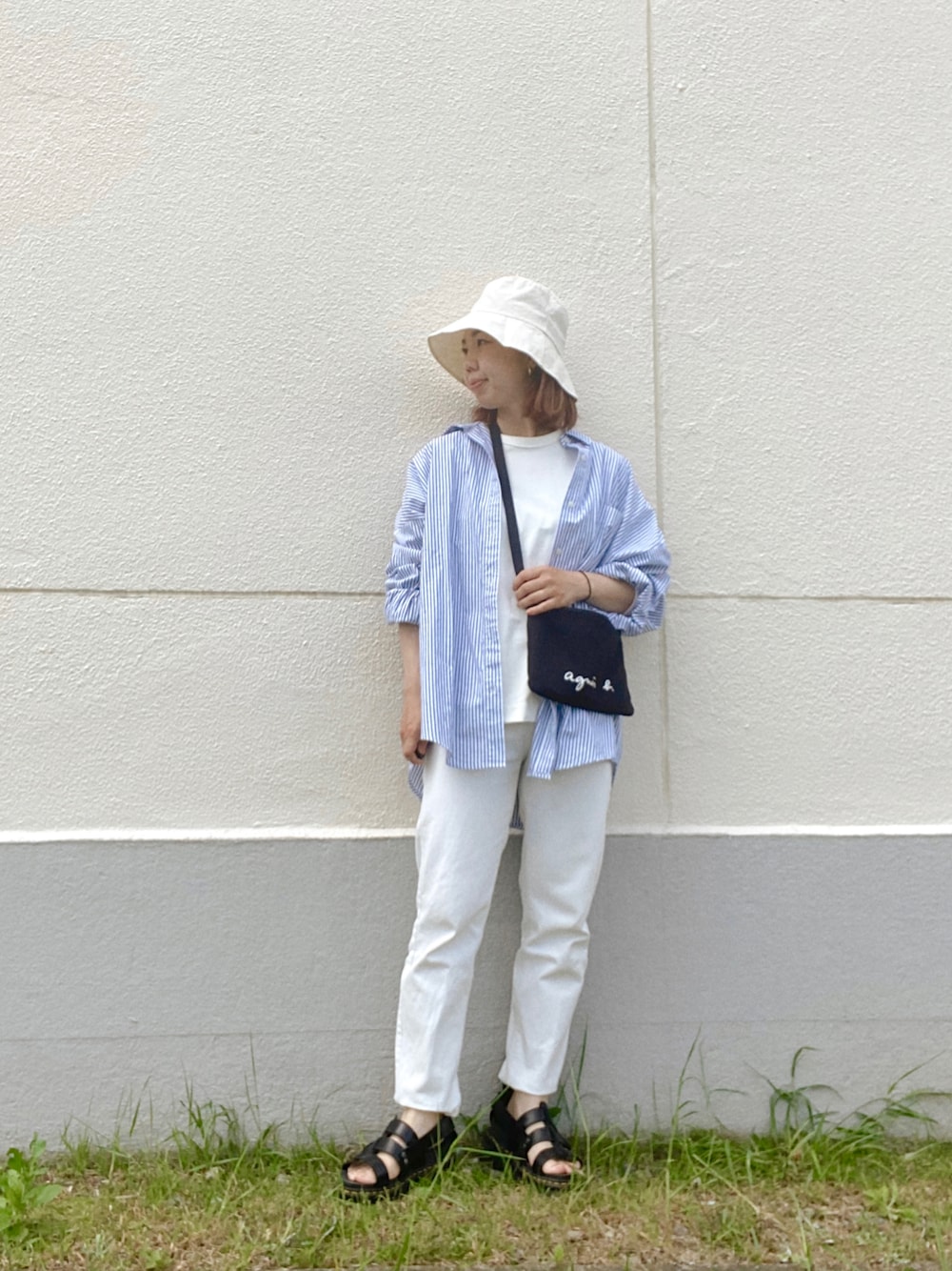2022-04-12 珍しくシャツコーデ💙💙💙💙💙 リーバイスのホワイトデニムも 長いことずっと履いてる!☺️ 好きなものを大切に長く着たいなあ💓