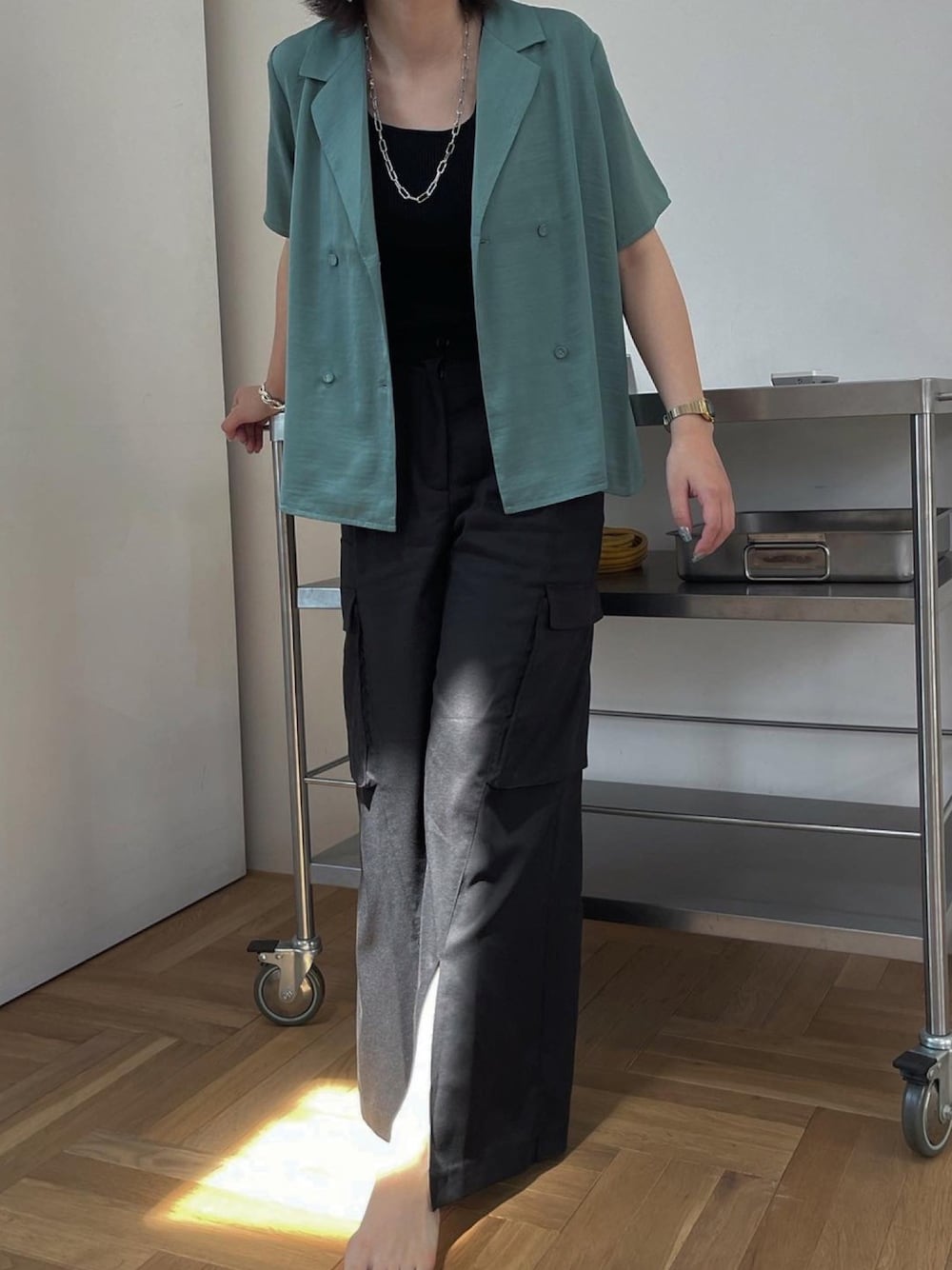 色味に一目惚れした開襟シャツ。 ブラックと合わせてシャツ主役コーデに。 アクセは圧倒的にシルバー派 【Instagram】@maa13_pp