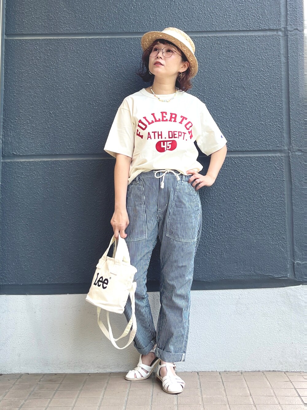 まーちゃん(m@)(Right-on)のTシャツ/カットソー「【Champion】カレッジロゴTシャツ」を使ったコーディネート