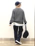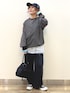 まーちゃん(m@)(Right-on)のスウェットパンツ「【HONEYSUCKLE ROSE】加工スウェットパンツ (トレンド/リラックス/柔らか素材/微光沢)」を使ったコーディネート
