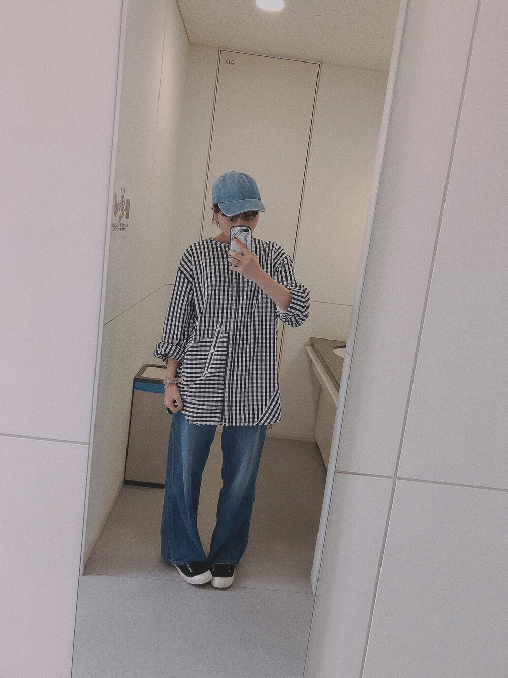 all_/niko and... 春らしいギンガムチェックのデカシャツとバギパンを合わせて、ずるずるコーデ⚡️ キャップで雰囲気かっこよめに! トレンドのオーバーサイズを取り入れました⚡️ スニーカーはNB(ニコ販売)