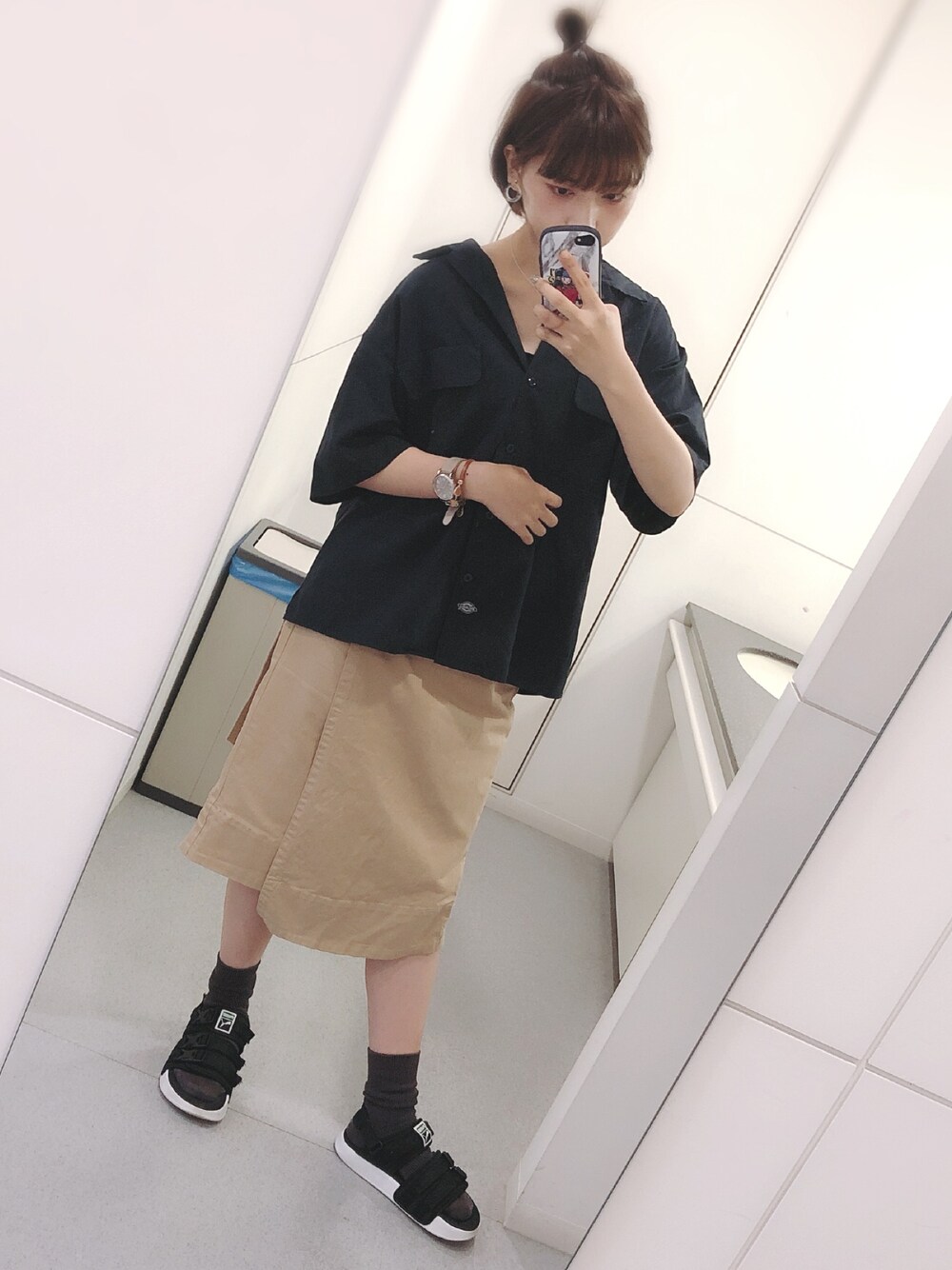 今日はブラック🖤 ニコの新作、dickeysの半袖ワークシャツをスカートの上にだらっと。 あえてインしない🖤 今日は暖かかったですね。 春服どんどん入荷して来てて楽しい!