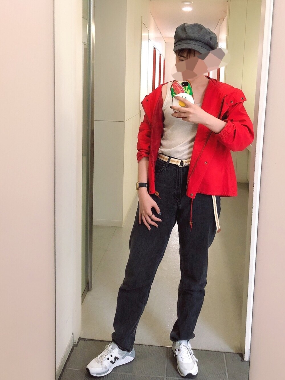 all_/niko and... 先シーズンのawで出た赤のマンパ❣️ ・ この頃気温の変化がすごいので、アウターは必需品です!( ´ ᵕ ` )中はタンクトップ1枚で、デニムと合わせてかっこよめにキメてみました。 ・ キャスケットは今季に出た少し大きめのグレー色🐊