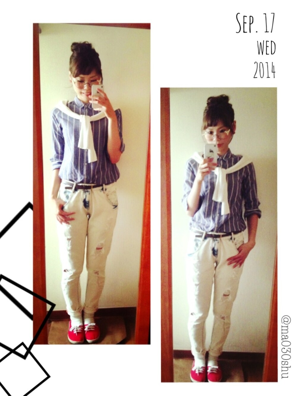 おはようございます。 見て頂いてる皆様、そんでもってSAVEまでして下さる皆様、ありがとうございます♥ 今日はまたガタっと気温が下がりましたね‼私個人的には嬉しい限りなんですが…朝から鼻水が止まりませんw 皆様も体調にはお気をつけくださいね(꒦ິ⌑꒦ີ) 今日はちょっとダサ子ちゃんコーデ♥ 秋には似つかわしくないうっすい色のデニムなんですがw ほんとは濃いー太いーデニムが欲しいんです…でもなかなかこれ‼ってのが見つからなくて。 秋が終わる前に見つけたいです(´-ω-`) cardigan:GU shoes:H&M socks:GU glasses:mystic instagram//@ma030shu よろしくお願いします♥