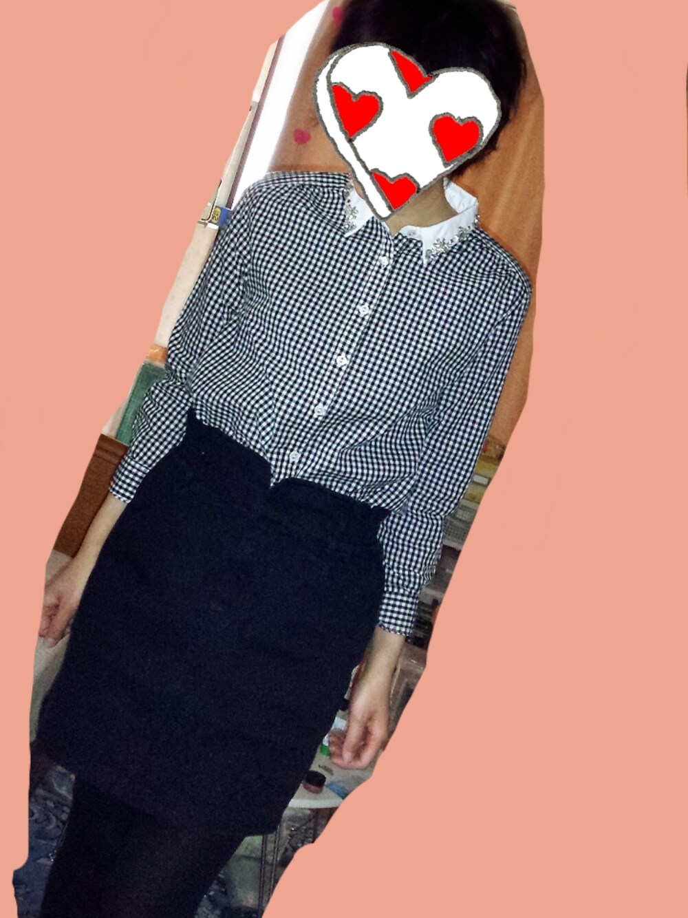 ギンガムチエックにビジューのシャツがお気に入り。