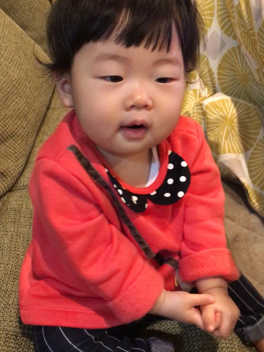 写真が近い💦 このトップス左側にポケットが付いてるんやけど見える写真が1枚もない😭 他のアングルでも撮ったけど全てダメでした💦 また見えるのが撮れたら載せさせてください😊 今日はやっと10ヶ月検診に行ってきました💡 パパも仕事休みだったので一緒に😊 ちょっとここからはママの凹み話が始まります… イヤな方はスルーしてください💦 では失礼します… 前々から娘は同じぐらいの子に比べて小さいなぁと思っていたパパとママ💨 でもすごい活発に動くし機嫌いいし大丈夫だろう💡と周りからも言われたから大丈夫かぁ💡と割り切ってました💨 さぁ検診開始💡 体重7220g。 身長66.8㎝。 ん? んん?? 7ヶ月検診から身長気持ち縮んでる… しかも体重200gしか増えてない… なんで? 離乳食はめっちゃ食べて母乳飲んでるはずなのに… 先生に「お母さん母乳出てなかったんやわ💦」と言われました😱 今なら8キロくらいあるのが平均やもんね💦 娘が母乳飲んでも出てないと怒ることなかったからてっきり出てるものだと思ってた… 娘よ…ごめん…😰 心配なら先生に見てもらえばよかったね… すごい娘に対して罪悪感が… 発達は十分すぎると言われたのがせめてもの救いでした💦 先生の言葉がグサグサと刺さり… それをパパはわかったのか「小さくても発達は十分すぎるくらいッて言われて元気なんやから大丈夫💡」と励ましてくれました😭 先生から母乳は辞めてミルクを飲ませてあげなさいと言われたので帰りにトイザらスでミルクを買って帰りました💡 今まで完母だったから哺乳瓶嫌われたらどうしよ?ッて思ったけどそんな心配をよそにぐびぐび飲んでくれた娘💡 一安心💨 最後の最後でミルクと哺乳瓶を新たに買い足すという😅 次1歳の時も見てもらう予定なのでそれまで体重が増えてくれることを祈ります🙏 暗くてごめんなさい💦 コーデと全然関係ない話😅 ここで吐き出したくなっちゃいました😭 長々と失礼しました💦