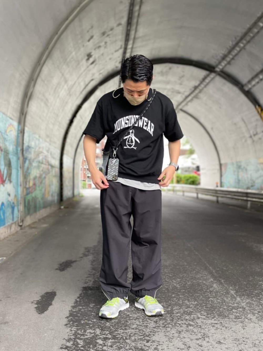 今日はブラックコーデを スポーツテイストに。 エディフィス別注の半袖スウェットも 薄手で今の時期でもまだまだいけますね♪ ここまでドーンとプリントしたのも 久々です。 パミリタリートレーニングをモチーフにしたパンツも今日みたいな雨の日でもへっちゃらです♪ 今日は仕事終わりに歩活するのでハイテクスニーカーで👟