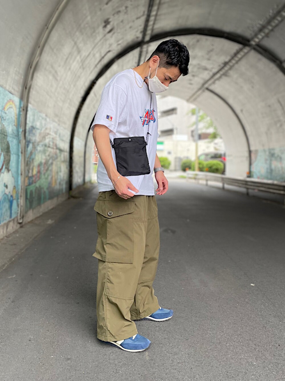 ミリタリーパンツには白Tシャツで。 いつの時代も変わらない相性の良さですね♪ 無地のTシャツも良いんですが、 MLBのロサンゼルス・エンゼルスのデザインTシャツで少し今っぽくしています。 Tシャツとパンツも最近のですが、 どちらも見た目が昔ですね笑 それがいい感じなんですけどね。