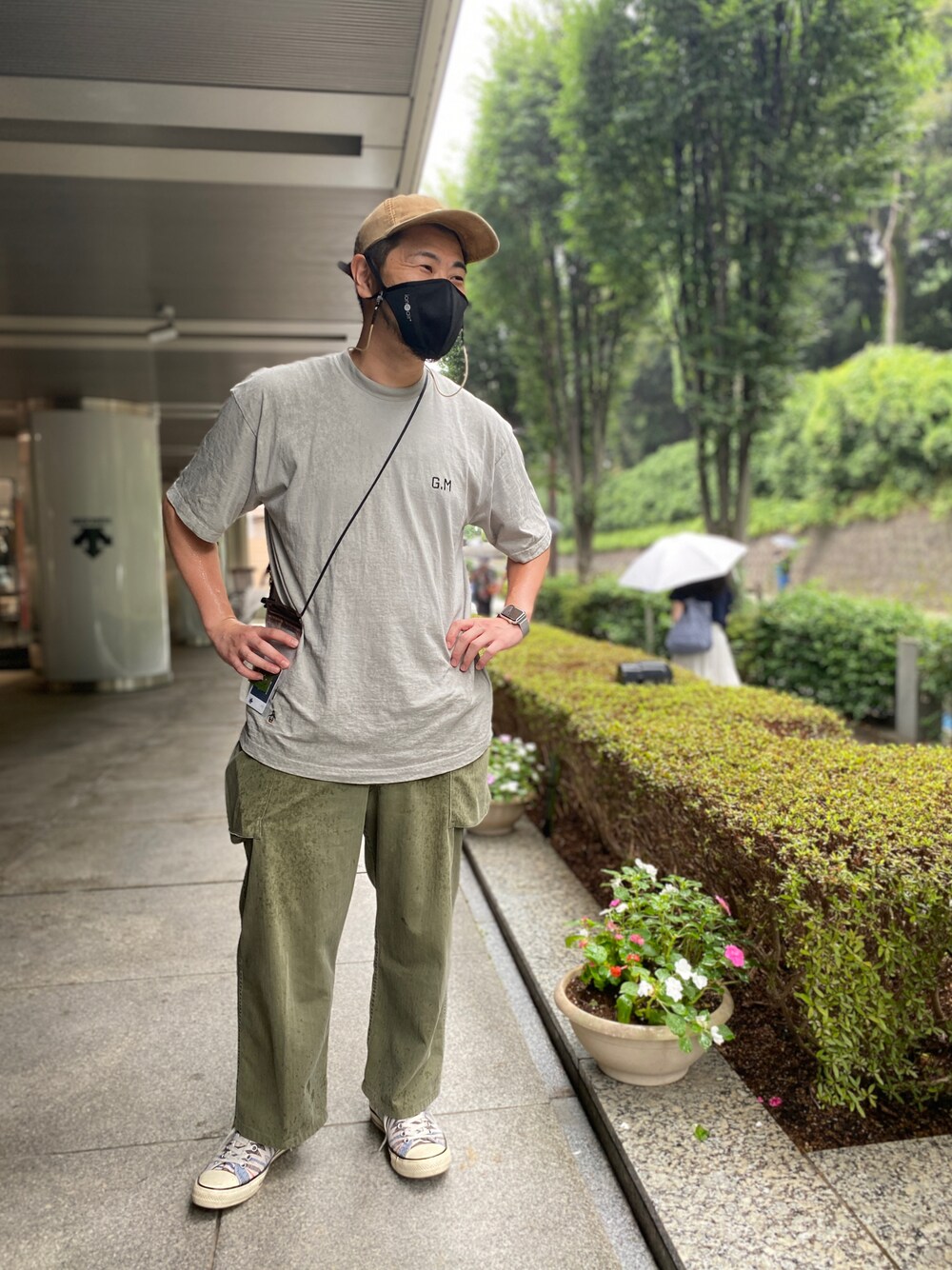 アースカラーをまとめたコーディネート? パンツでミリタリーは鉄板です✨ トップスは白でなくグレーが全体の雰囲気に溶け込んでていい感じです♫ FILSONのアメリカ製キャップもお気に入りです。 …そういえば全身アメリカブランドのコーディネートでした笑