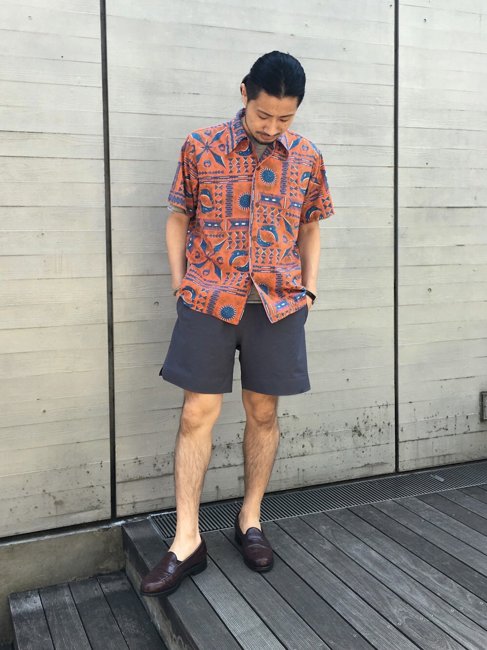 明日は、尊敬する1人の結婚式。 キメて行きます‼︎ かりゆしってどこで買えるのかな? DESCENTE PAUSE 【ポケットTシャツ】 60年代ビンテージのアロハシャツと最新の素材を合わせたコーディネート。 革靴で合わせ、きれい目な着こなしに。