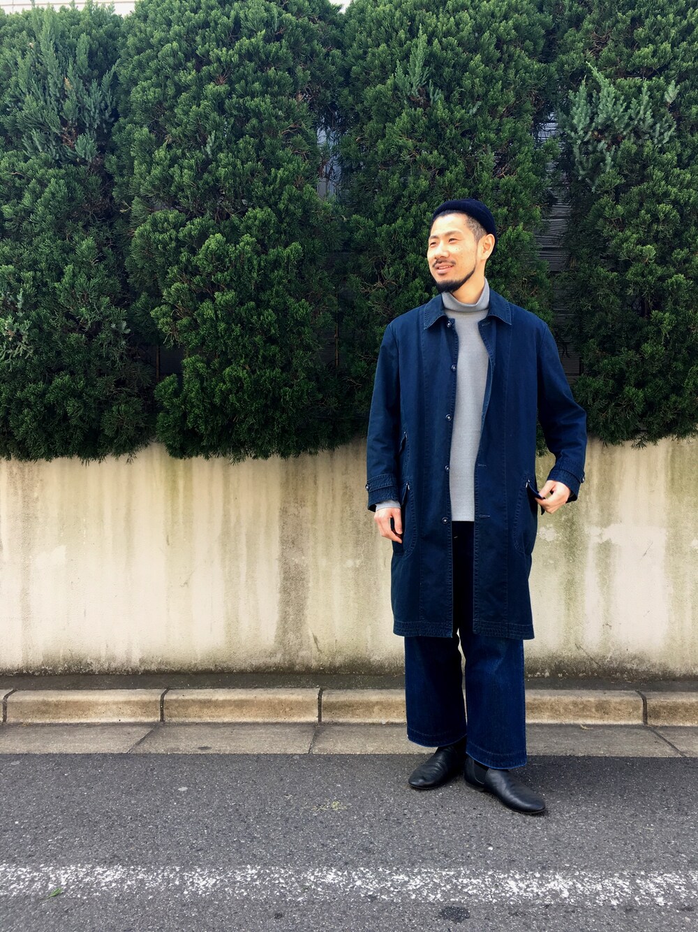 昼間の気温が暖かくて、 夜の気温が寒くて、 まだまだ冬春ですね。 DESCENTE PAUSE 【ダブルニットタートルシャツ】 オーバーサイズでワイドパンツとコートの組み合わせも良いです♪