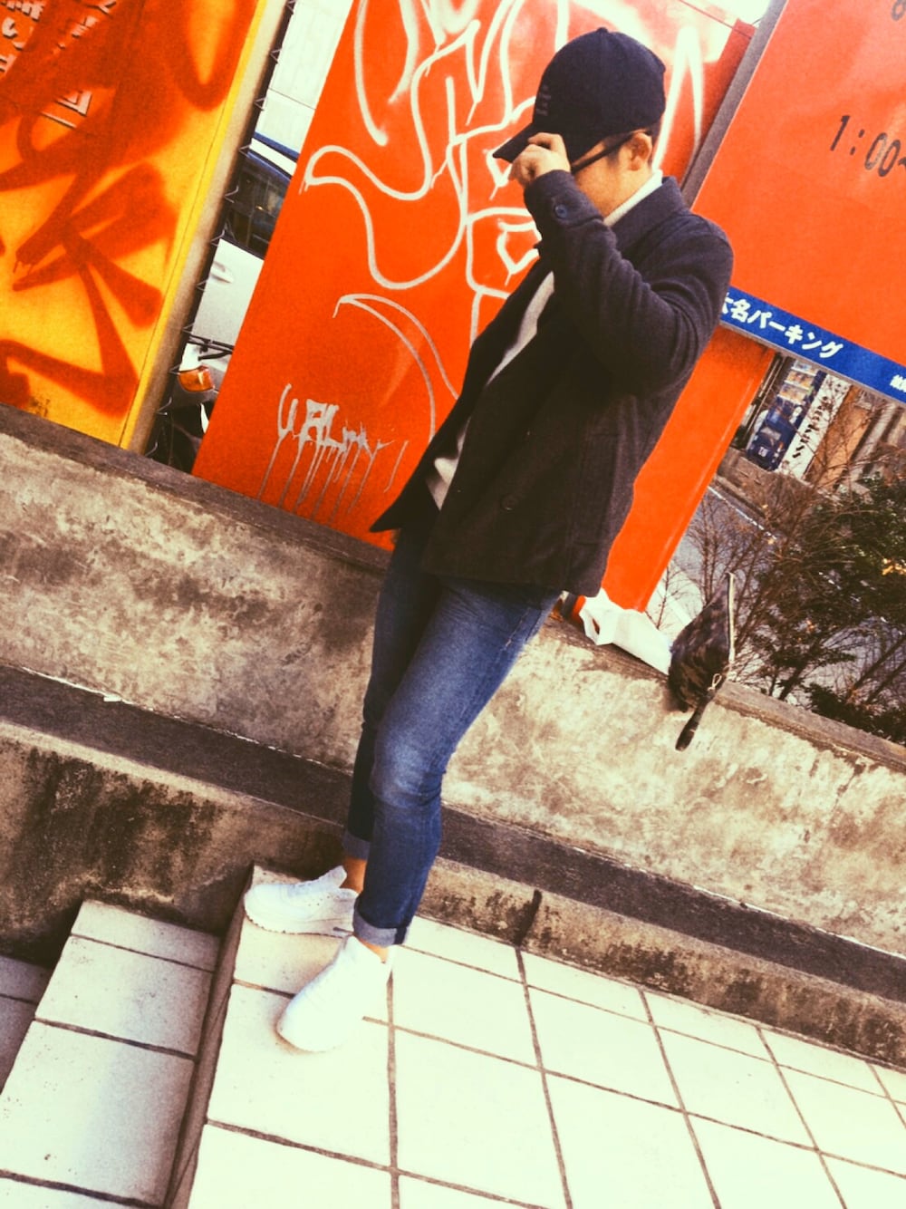 タートルネックのニットにピーコートで合わせました